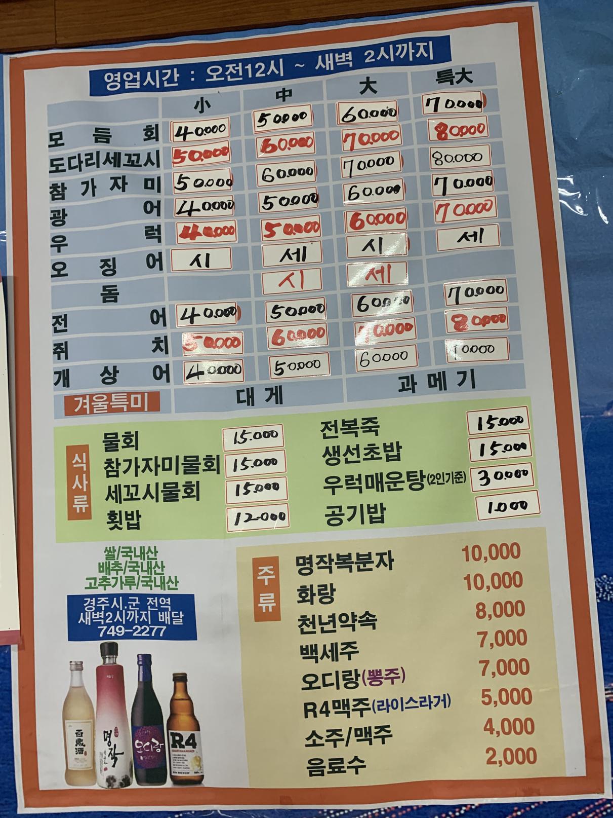 주소경상북도 경주시 안강읍 안강중앙로 109 감포해녀횟집